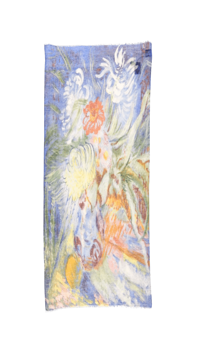 Beautiful scarf with painting of flowers in blue from Sigrid Hjerten print from Otra Cosa. Belongs to our newest Spring/Summer 2026 Collection. This versatile linen/cotton scarf offers a perfect blend of comfort and style. Crafted from a soft, breathable fabric, it is lightweight yet cozy, making it ideal for year-round wear. The natural fibers provide a subtle texture and an elegant drape, enhancing any outfit with a touch of effortless sophistication. Whether wrapped around your neck on a chilly evening or draped over your shoulders on a breezy day, this scarf is a timeless accessory that combines functionality with timeless fashion.