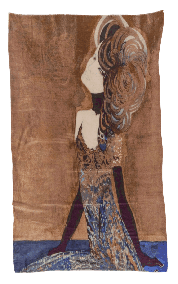 Luxurious wool-silk scarf featuring “Society Person” by Carel de Nerée. This refined scarf translates the elegant and symbolic style of Carel de Nerée’s Society Person into a sophisticated wearable artwork. The graceful lines, refined detailing and subtle tonal contrasts create a distinctive and timeless statement piece.