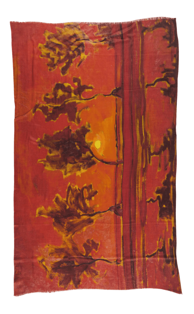 Luxurious wool-silk scarf featuring “Abstract Landscape” by Piet Mondriaan. This refined scarf translates Piet Mondriaan’s expressive Abstract Landscape into a sophisticated wearable design. The harmonious balance of structure, color and composition creates a modern yet timeless aesthetic, full of artistic depth and quiet elegance.