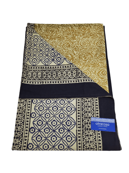 Beautiful bagru throw in cotton with print in black, navy, ecru and gold from Otra Cosa. Belongs to our newest collection. Made from great quality cotton. This throw is very versatile and can be used in over 5 different ways, here are some examples: